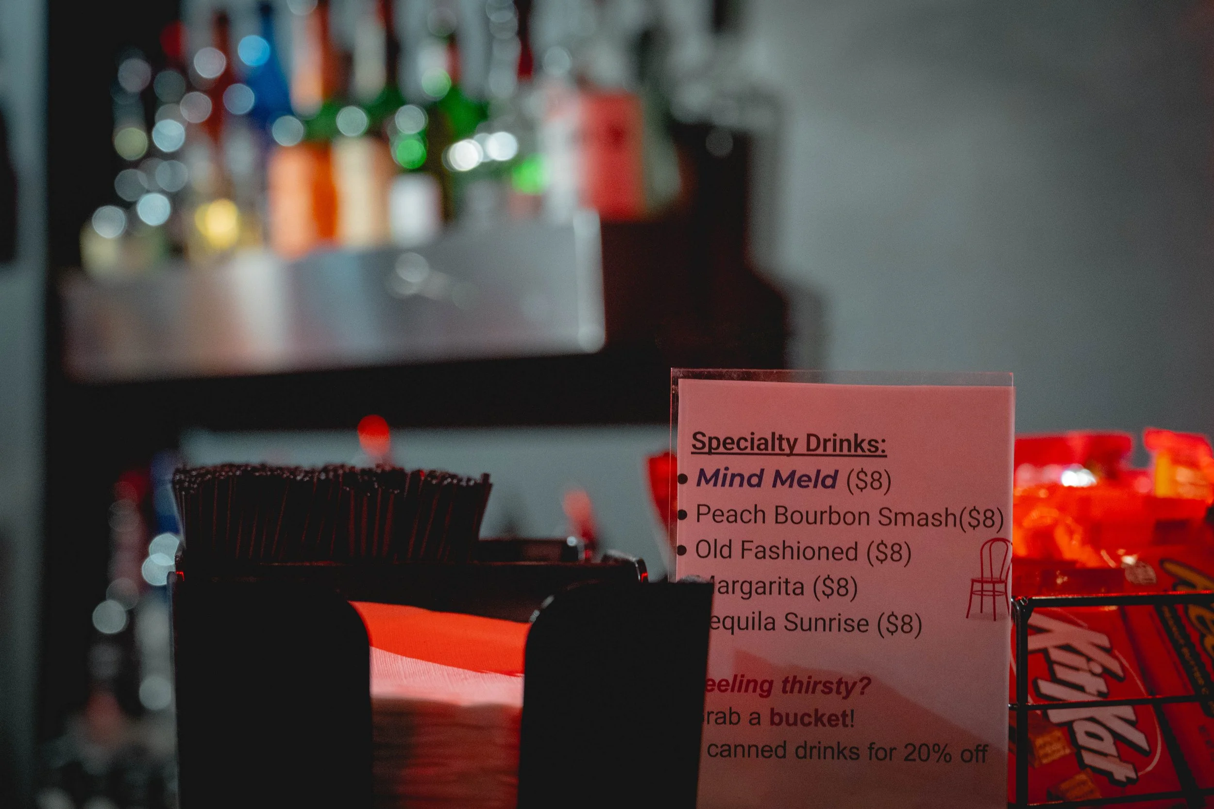 bar menu & more Doorsopen 30 min. before show—getyourtix→ Additional snacks and candy options available at the bar. Doors open at 7:30pmWednesday - saturday-get your tickets→